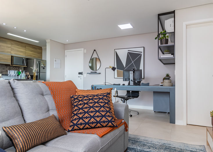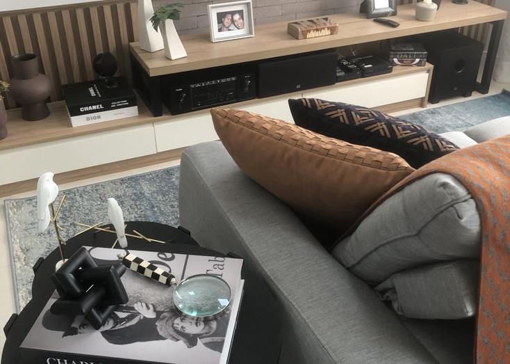 Nesse projeto, fizemos uma reforma parcial das áreas sociais do apartamento, sendo, sala de estar, jantar, varanda e utilizamos um espaço que anteriormente era inutilizado para ser a nova sala de jantar e criar um espaço super bacana de home office.